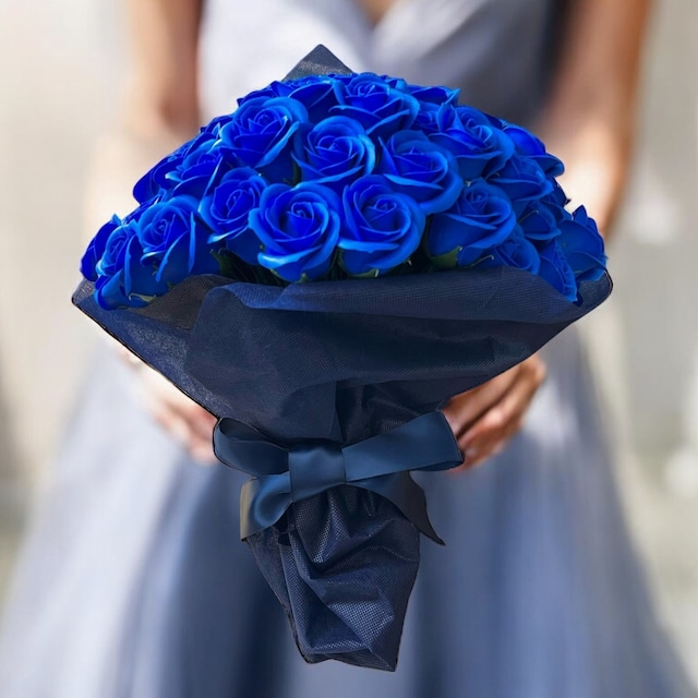 【永遠の輝き - ロイヤルブルー -】 凛としたロイヤルブルーは「信頼」「尊敬」を象徴。落ち着きと知性を感じさせる色合いで、ビジネスシーンの贈り物や父の日のプレゼントに最適です。爽やかで上品な印象はインテリアにも映え、特別な場面をより印象深く演出します。 【特別な瞬間に、永遠の薔薇を】 オリジナルブランド「サヴォンローズ」は、石鹸成分で作られたバラの花束で、贅沢な美しさと長持ちする魅力を兼ね備えています。洗練されたデザインと鮮やかな色合いが、特別な瞬間をより一層華やかに演出します。贈り物やインテリアに最適なこのブーケは、気品と高級感を求める方にぴったりです。 【石鹸で咲く、永遠の薔薇】 「サヴォンローズ」は、洗練された特別な瞬間を一層華やかに彩る花束です。鮮やかな発色の薔薇が、誕生日や記念日のプレゼント、お部屋のインテリアとしても最適で、枯れることのない耐久性と満開の薔薇の美しさを長く楽しめます。 人気急上昇中の「サヴォンローズ」は、石鹸の素材から作られた上質な一品。生花のような存在感があり、虫がつく心配もありません。 “永遠に咲き続ける薔薇”を、ぜひ特別な日のプレゼントや自分へのご褒美に贈ってみませんか?花束のラッピングは無料、紙袋付きでお届けいたします。 ラッピングは、 ・花色を際立たせるダークブルー色 ・さわやかな薄水色 からお選びいただけます。 SNS映えも間違いなしの「サヴォンローズ」で、特別な瞬間をもっと特別に。 メッセージカードをお付けできます。ご希望の方は、ご注文時の備考欄に「30文字以内」でご記入ください。 【サヴォンローズをおすすめする3つの理由】 サヴォンローズをおすすめする理由は、3つの“自由”にあります。 1. メンテナンスフリー 水やり不要で色褪せず、長期間美しさを保ちます。手間いらずで、いつまでも華やかな空間を演出します。 2. アレルギーフリー 生花と異なり、花粉がなく農薬も使用していないため、アレルギーを気にする必要がありません。どなたにでも安心してお贈りいただけます。 3. カラーフリー サヴォンローズは、自然界にない色の薔薇も創り出すことができます。特に、ブルーローズを贈りたいときには、ロイヤルブルーのサヴォンローズがおすすめです。 この3つの“自由”が、サヴォンローズを特別な贈り物にします。 【お客様の声】 ・綺麗な青のバラの花束でした!渡すのが楽しみです。ありがとうございました。【A様】 ・彼氏の卒業式にブルーローズのブーケを贈りたかったので、間に合って良かったです。きれいな状態で届きました!ありがとうございました。【M様】 ・とても上品で綺麗でした!【C様】 ・コロナになってしまい、評価遅れましたが、梱包もお綺麗でまたお願いします!【M様】 ・意見も聞いて頂きありがとうございました。サプライズで喜んでいただけました!【R様】 【商品情報】 サイズ: 縦35cm×横30㎝ 材質:石鹸、ナイロン、ポリエステル <本数別価格> ★Lサイズ(100本) ¥12,980 ★Mサイズ(70本) ¥9,980 ★Sサイズ(50本) ¥7,980 ------注意事項------ ※観賞用の石鹸素材のため、ご使用はお控えください。 ※ご覧になっているモニター・PC環境により実際の商品と色味が異なって見える場合がございます。 予めご理解の頂いたうえでご購入ください。