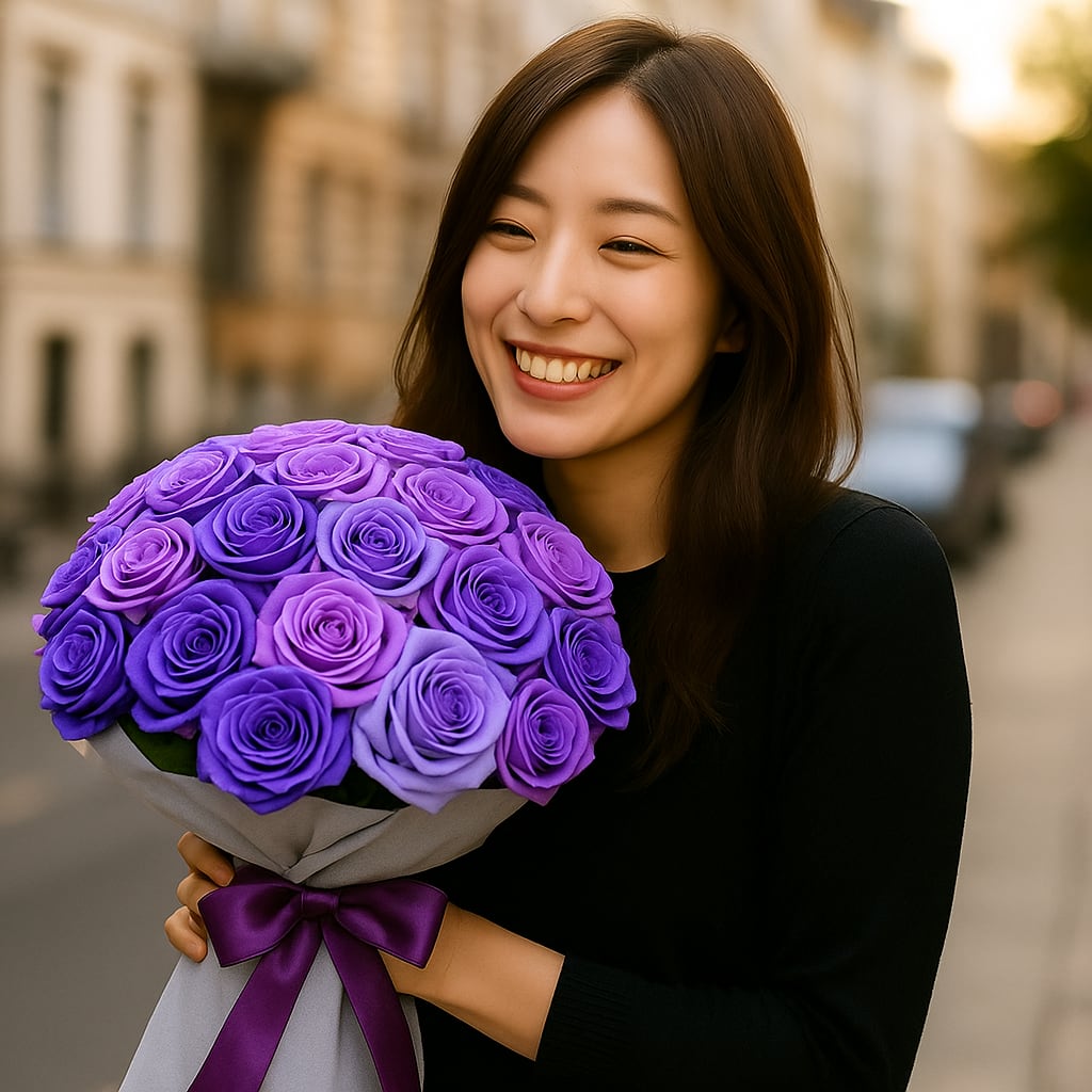 【優美な彩り - パープルミックス -】 神秘的で優雅なパープルミックスは、「癒し」「調和」を象徴。落ち着いた色合いと華やかさを兼ね備え、目にする人の心を穏やかにします。お祝いの席や季節の贈り物にもぴったりで、特別感あふれるギフトとして喜ばれます。 【特別な瞬間に、永遠の薔薇を】 オリジナルブランド「サヴォンローズ」は、石鹸成分で作られたバラの花束で、贅沢な美しさと長持ちする魅力を兼ね備えています。洗練されたデザインと鮮やかな色合いが、特別な瞬間をより一層華やかに演出します。贈り物やインテリアに最適なこのブーケは、気品と高級感を求める方にぴったりです。 【石鹸で咲く、永遠の薔薇】 「サヴォンローズ」は、洗練された特別な瞬間を一層華やかに彩る花束です。鮮やかな発色の薔薇が、誕生日や記念日のプレゼント、お部屋のインテリアとしても最適で、枯れることのない耐久性と満開の薔薇の美しさを長く楽しめます。 人気急上昇中の「サヴォンローズ」は、石鹸の素材から作られた上質な一品。生花のような存在感があり、虫がつく心配もありません。 “永遠に咲き続ける薔薇”を、ぜひ特別な日のプレゼントや自分へのご褒美に贈ってみませんか?花束のラッピングは無料、紙袋付きでお届けいたします。 メッセージカードをお付けできます。ご希望の方は、ご注文時の備考欄に「30文字以内」でご記入ください。 SNS映えも間違いなしの「サヴォンローズ」で、特別な瞬間をもっと特別に。 【サヴォンローズをおすすめする3つの理由】 サヴォンローズをおすすめする理由は、3つの“自由”にあります。 1. メンテナンスフリー 水やり不要で色褪せず、長期間美しさを保ちます。手間いらずで、いつまでも華やかな空間を演出します。 2. アレルギーフリー 生花と異なり、花粉がなく農薬も使用していないため、アレルギーを気にする必要がありません。どなたにでも安心してお贈りいただけます。 3. カラーフリー サヴォンローズは、自然界にない色の薔薇も創り出すことができます。特に、ブルーローズを贈りたいときには、ロイヤルブルーのサヴォンローズがおすすめです。 この3つの“自由”が、サヴォンローズを特別な贈り物にします。 【お客様の声】 ・早々と急な注文にもかかわらず、良い対応をしていただいてありがとうございました。凄く満足です。【Y様】 ・とても上品で綺麗でした!【C様】 ・式場への直送、助かりました。最高のサプライズができました!【Y様】 ・梱包もお綺麗でまたお願いします!【M様】 ・無事に渡すことができました!早い対応、本当にありがとうございました!【T様】 【商品情報】 サイズ: 縦40cm×横30㎝ 材質:石鹸、ナイロン、ポリエステル <本数別価格> ★Lサイズ(100本) ¥12,980 ★Mサイズ(70本) ¥9,980 ★Sサイズ(50本) ¥7,980 ------注意事項------ ※観賞用の石鹸素材のため、ご使用はお控えください。 ※ご覧になっているモニター・PC環境により実際の商品と色味が異なって見える場合がございます。 予めご理解の頂いたうえでご購入ください。