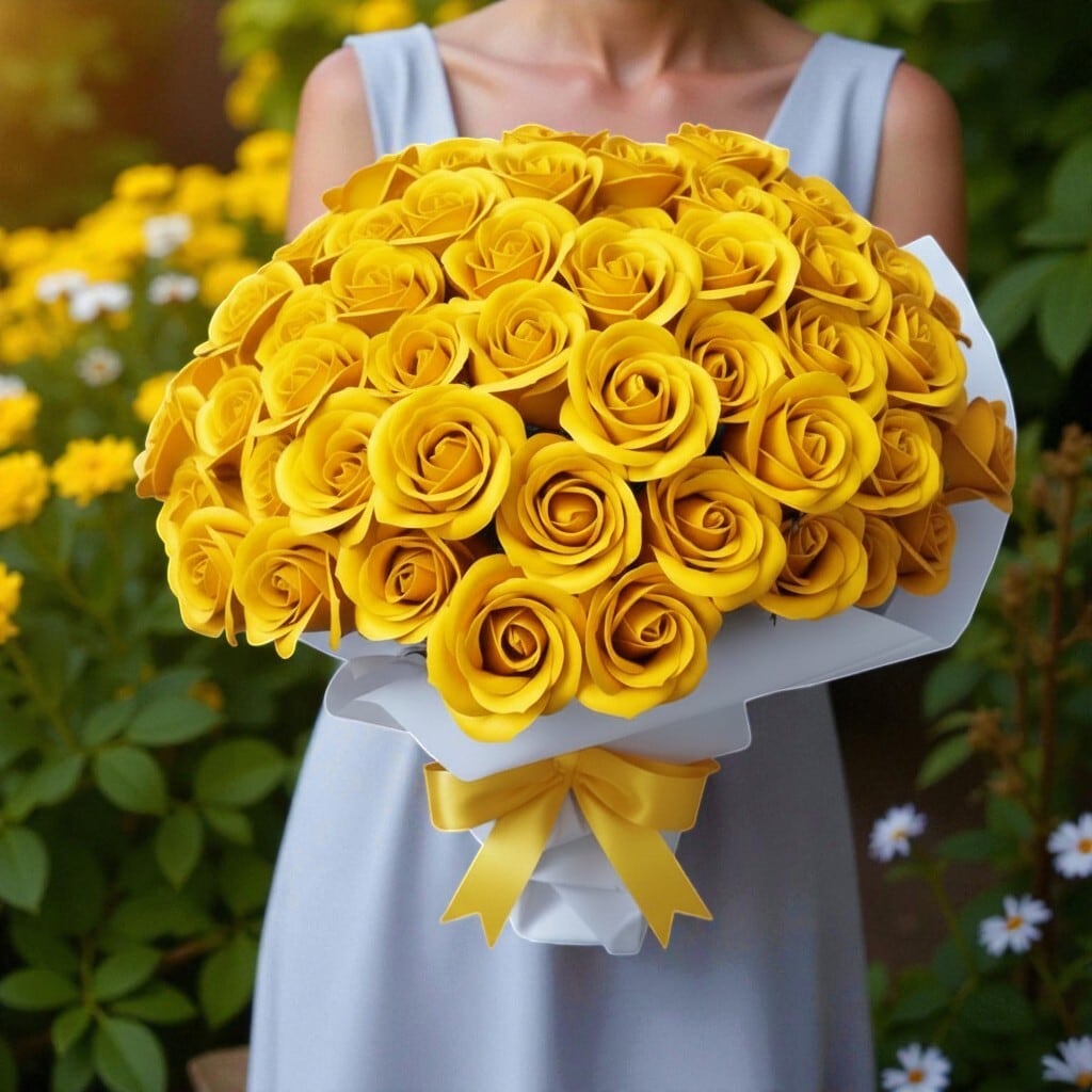明るく輝くゴールデンイエローは「友情」「希望」の象徴。太陽のような温かさで、就職祝い・新生活の門出に最適です。見るだけで元気を与える華やかな色合いは、インテリアにも映え、前向きな気持ちを届ける贈り物になります。