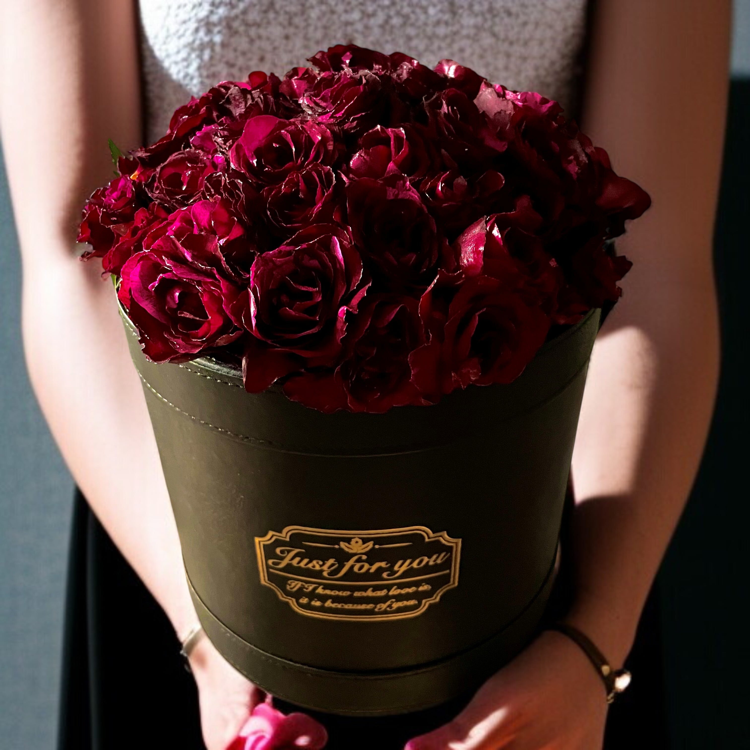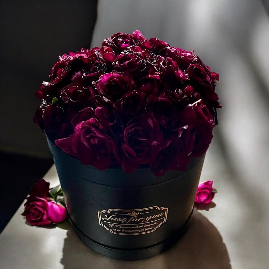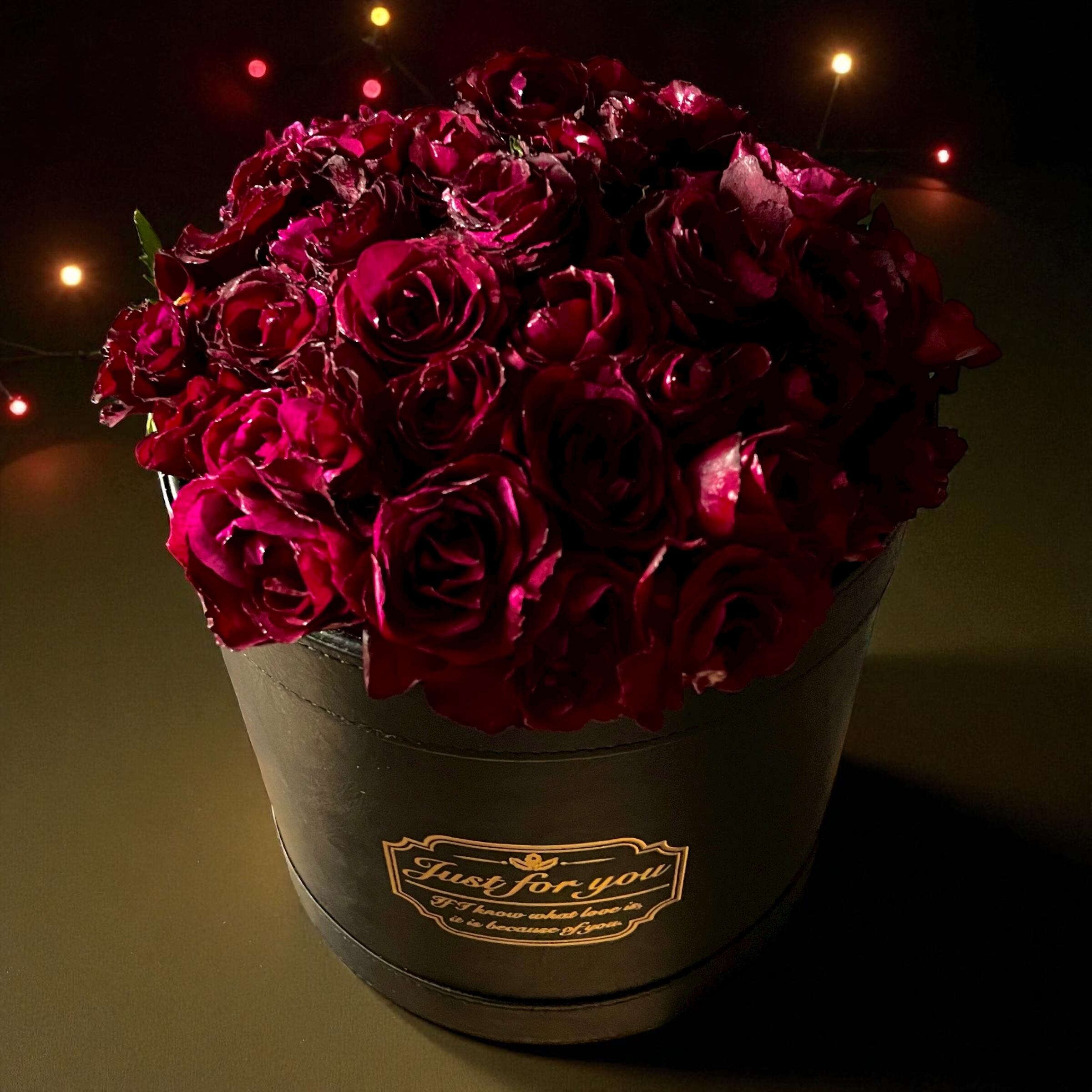 深紅のローズがぎっしり詰まったボックスは、写真映え抜群。