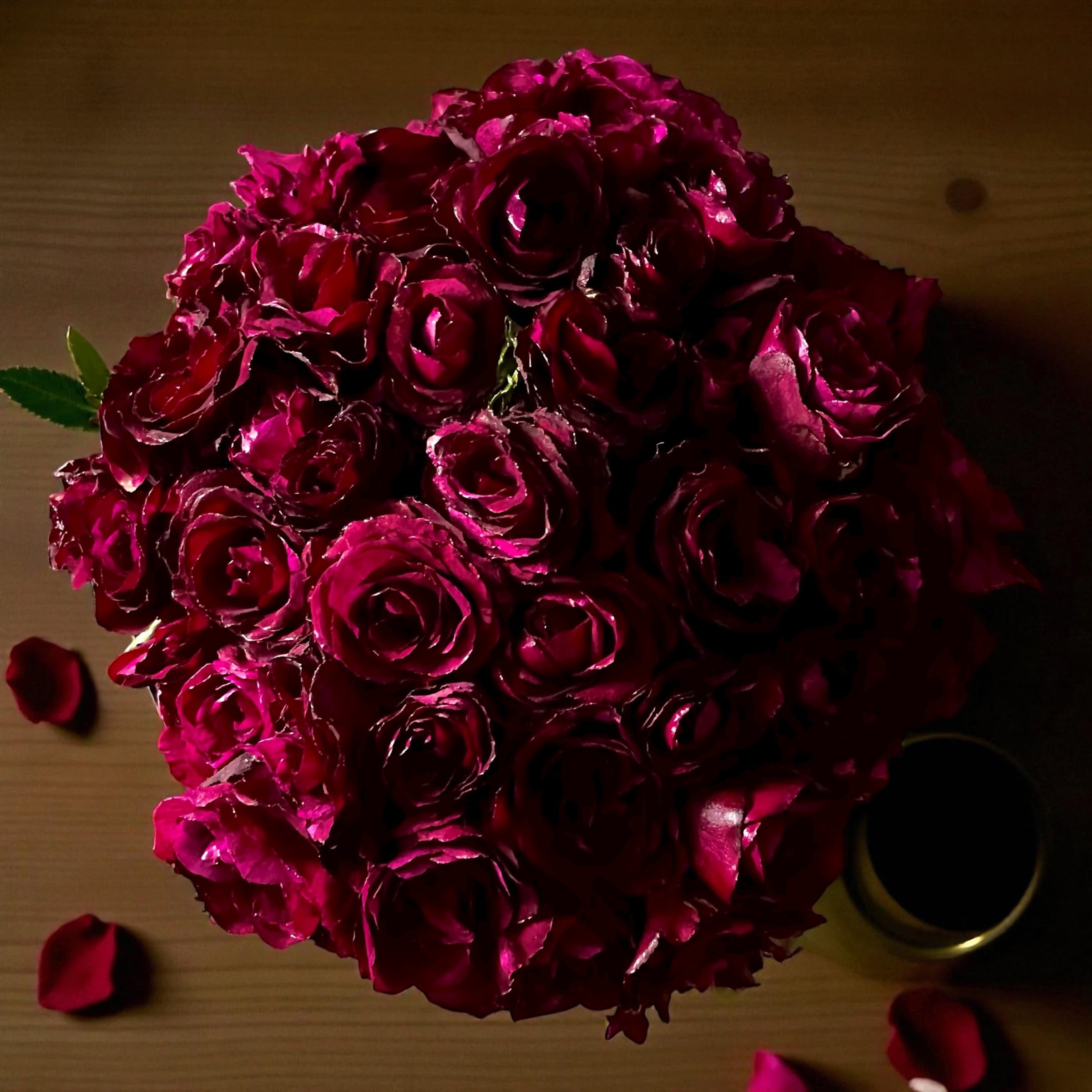 約50本の本物のローズを丁寧に乾燥加工し、自然の美しさをそのまま閉じ込めた贅沢な一品。