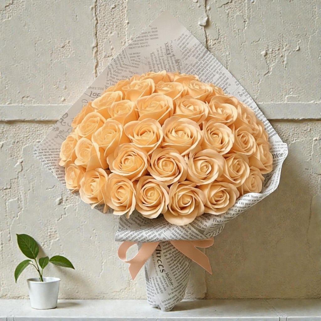 オリジナルブランド「サヴォンローズ」は、石鹸成分で作られたバラの花束で、贅沢な美しさと長持ちする魅力を兼ね備えています。洗練されたデザインと鮮やかな色合いが、特別な瞬間をより一層華やかに演出します。贈り物やインテリアに最適なこのブーケは、気品と高級感を求める方にぴったりです。