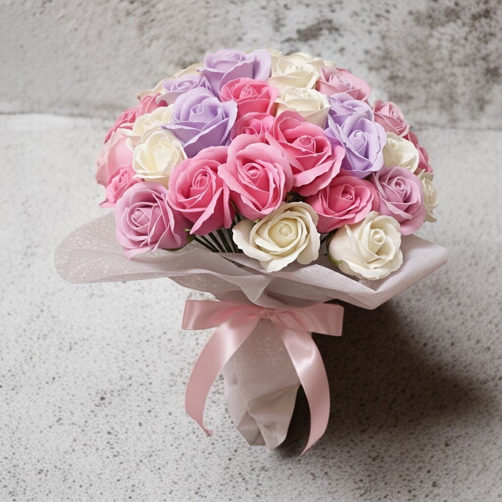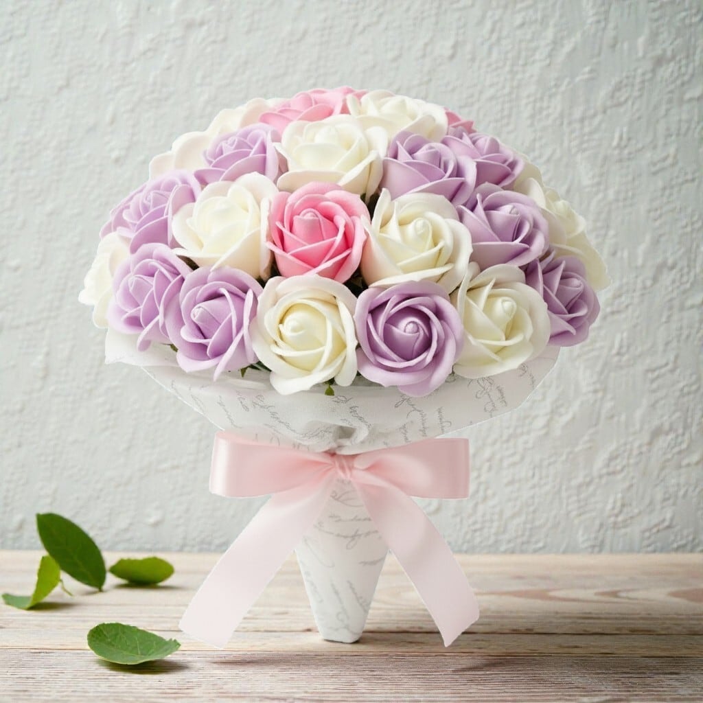 オリジナルブランド「サヴォンローズ」は、石鹸成分で作られたバラの花束で、贅沢な美しさと長持ちする魅力を兼ね備えています。洗練されたデザインと鮮やかな色合いが、特別な瞬間をより一層華やかに演出します。贈り物やインテリアに最適なこのブーケは、気品と高級感を求める方にぴったりです。