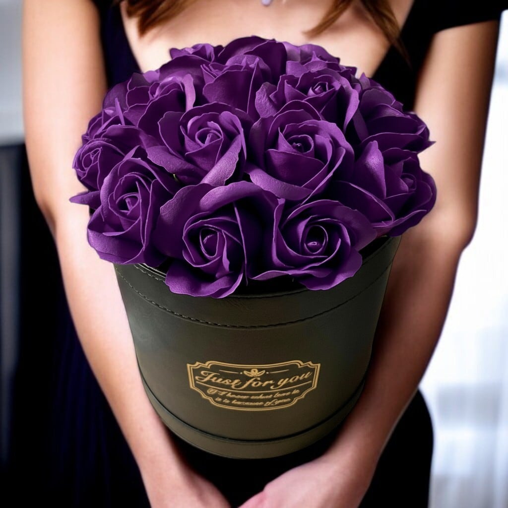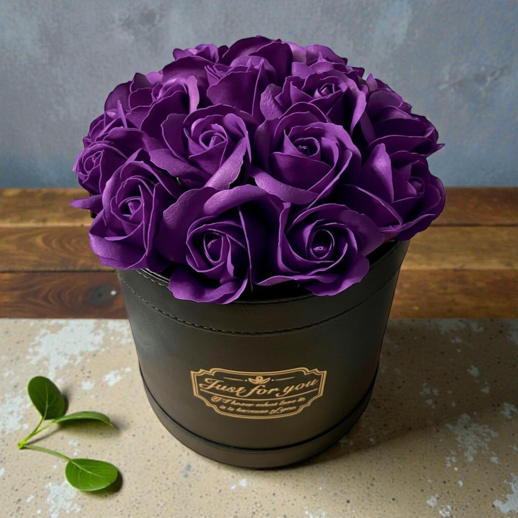 ディープパープル F(20本) サヴォンローズ レザーフラワーボックス