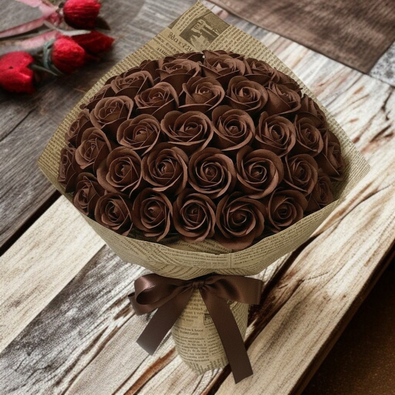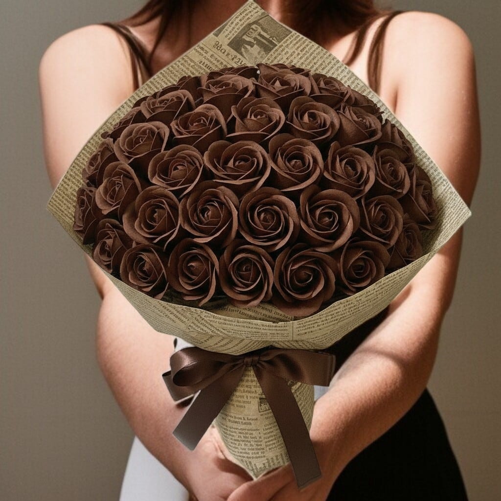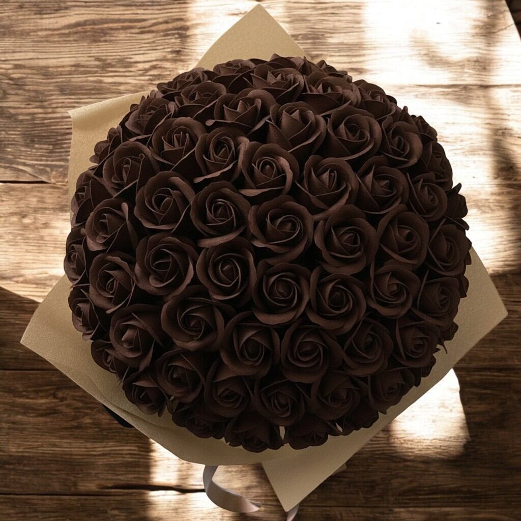 深く艶やかなチョコブラウンは、包容力と成熟した愛を象徴する色。上質なショコラのような落ち着きが、想いを静かに伝えます。記念日や格式ある贈り物にふさわしく、空間に洗練された余韻を添えます。