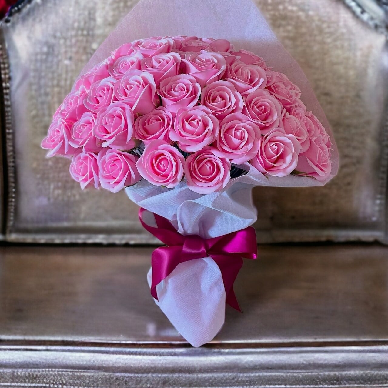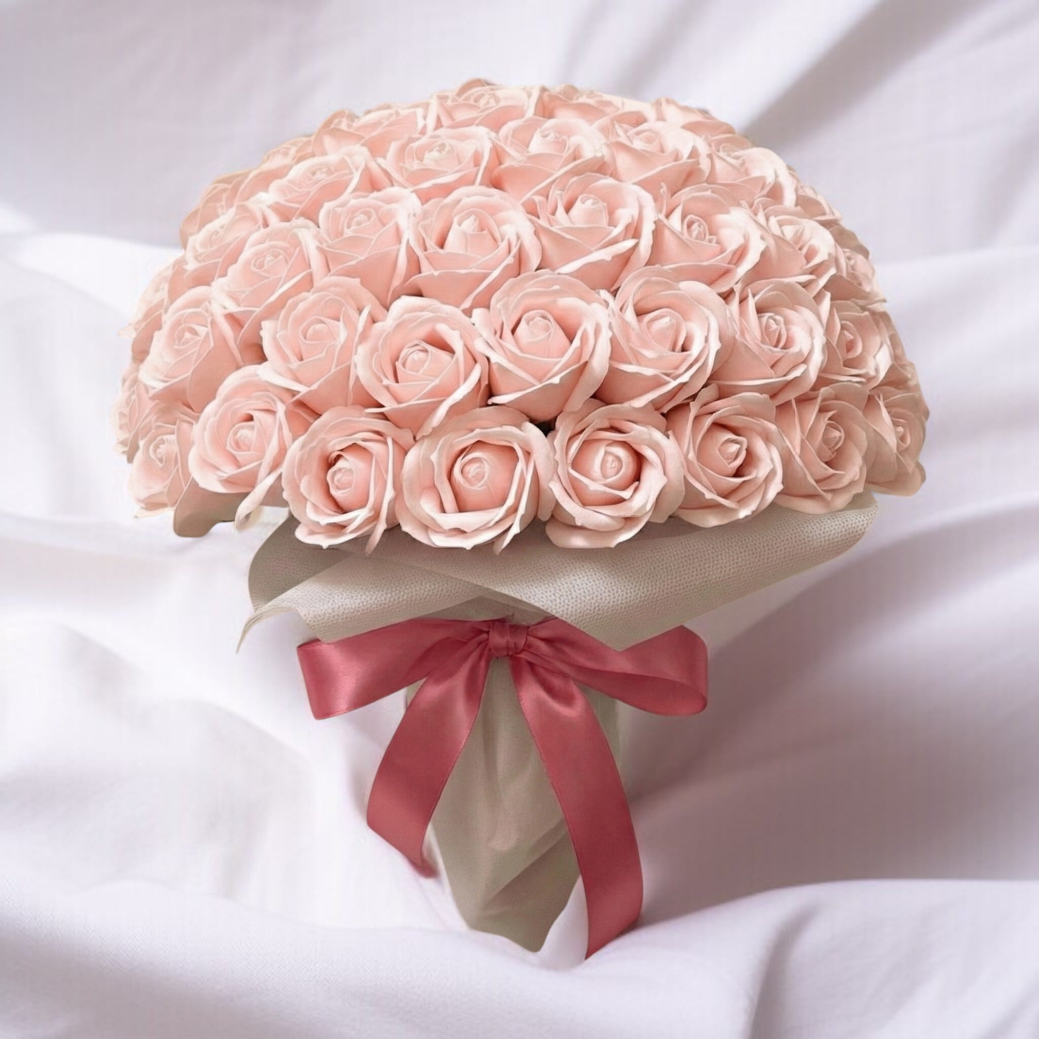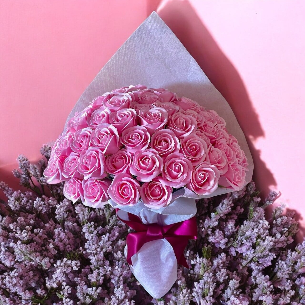 オリジナルブランド「サヴォンローズ」は、石鹸成分で作られたバラの花束で、贅沢な美しさと長持ちする魅力を兼ね備えています。洗練されたデザインと鮮やかな色合いが、特別な瞬間をより一層華やかに演出します。贈り物やインテリアに最適なこのブーケは、気品と高級感を求める方にぴったりです。