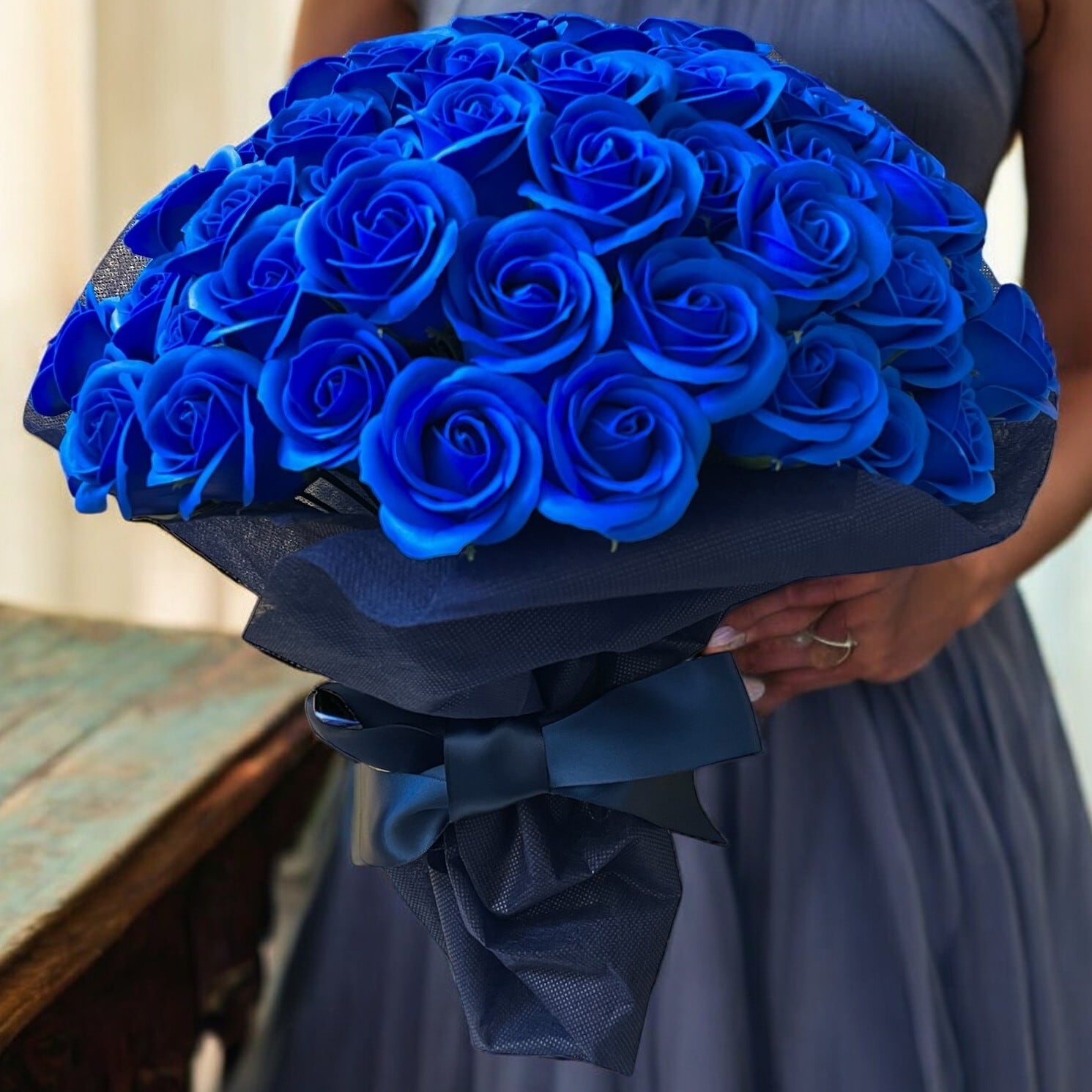 ・綺麗な青のバラの花束でした!渡すのが楽しみです。ありがとうございました。【A様】