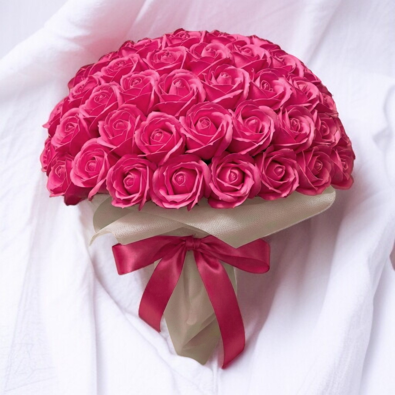 オリジナルブランド「サヴォンローズ」は、石鹸成分で作られたバラの花束で、贅沢な美しさと長持ちする魅力を兼ね備えています。洗練されたデザインと鮮やかな色合いが、特別な瞬間をより一層華やかに演出します。贈り物やインテリアに最適なこのブーケは、気品と高級感を求める方にぴったりです。