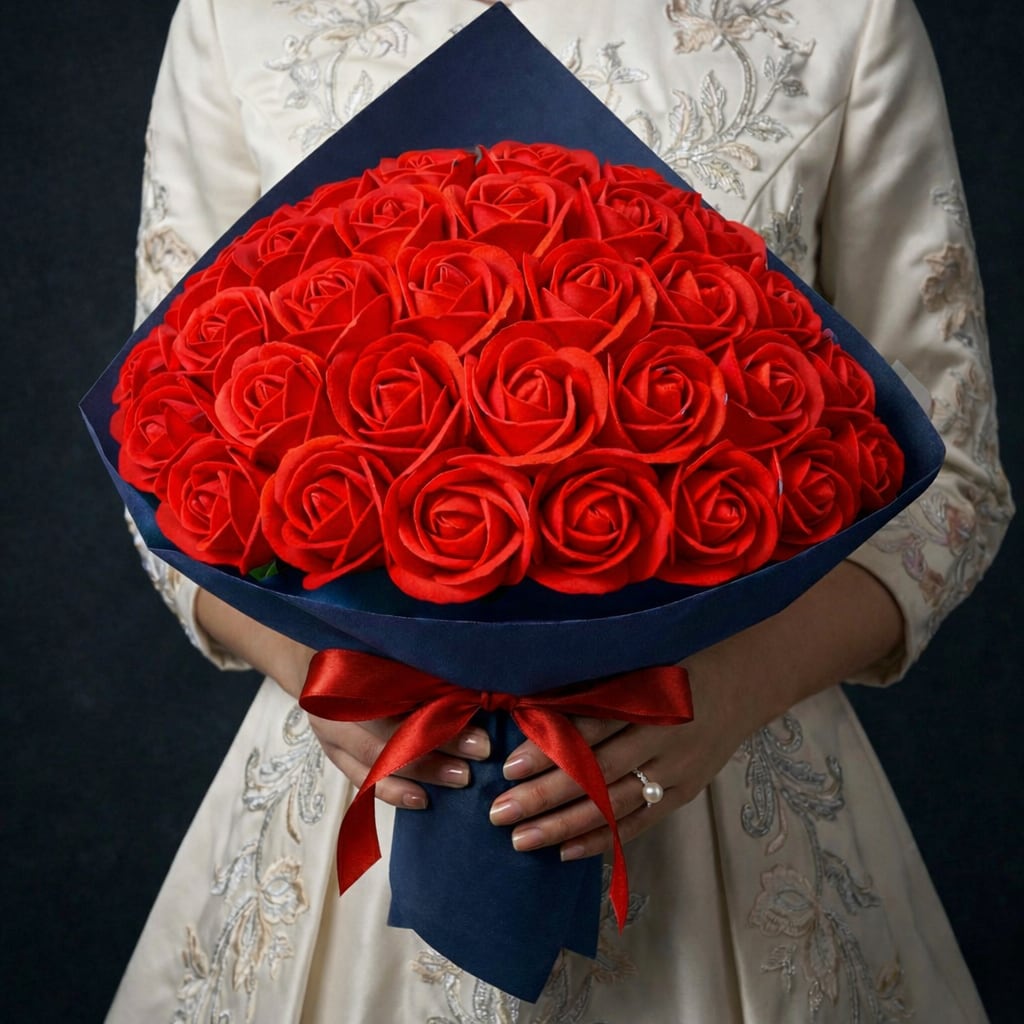 オリジナルブランド「サヴォンローズ」は、石鹸成分で作られたバラの花束で、贅沢な美しさと長持ちする魅力を兼ね備えています。洗練されたデザインと鮮やかな色合いが、特別な瞬間をより一層華やかに演出します。贈り物やインテリアに最適なこのブーケは、気品と高級感を求める方にぴったりです。