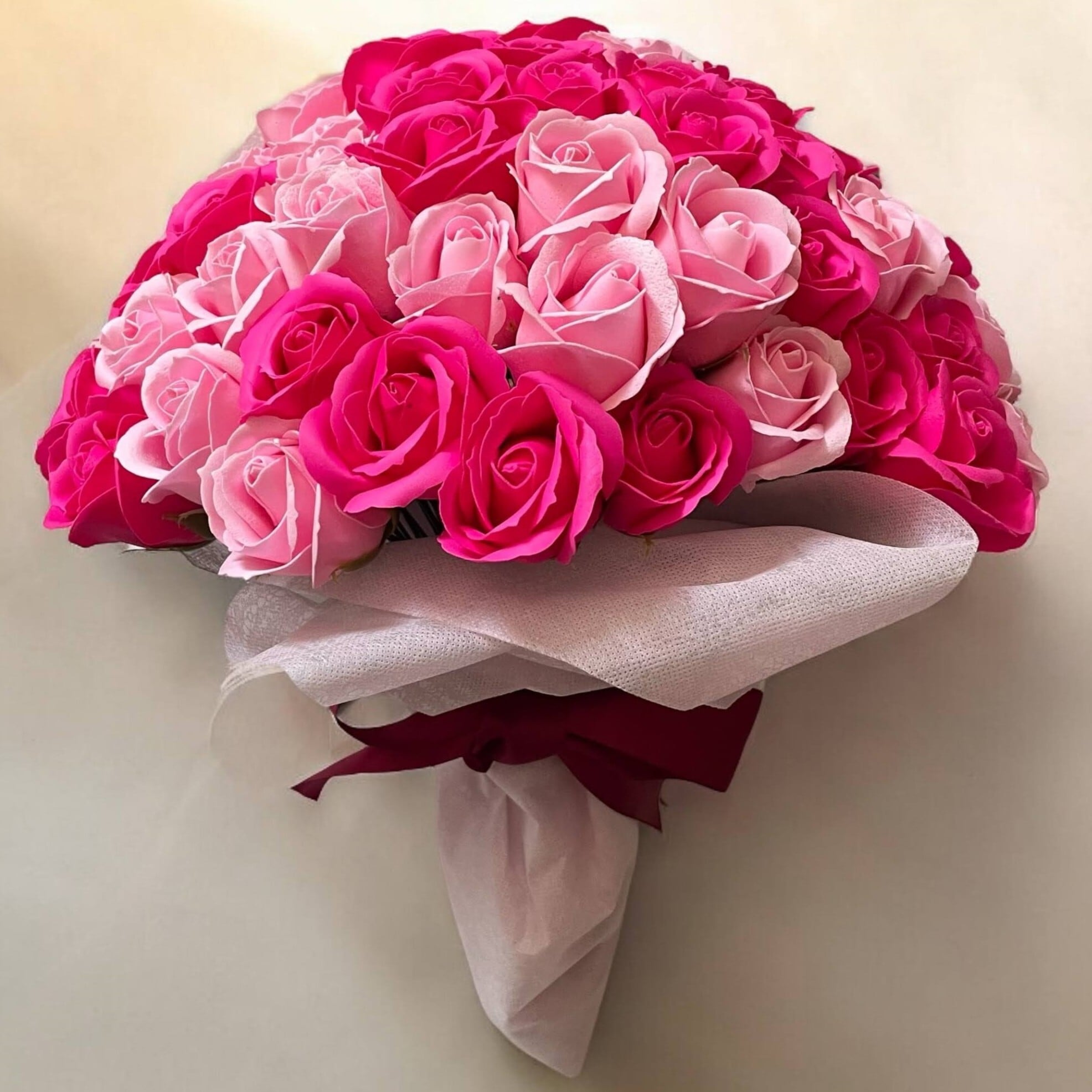 オリジナルブランド「サヴォンローズ」は、石鹸成分で作られたバラの花束で、贅沢な美しさと長持ちする魅力を兼ね備えています。洗練されたデザインと鮮やかな色合いが、特別な瞬間をより一層華やかに演出します。贈り物やインテリアに最適なこのブーケは、気品と高級感を求める方にぴったりです。