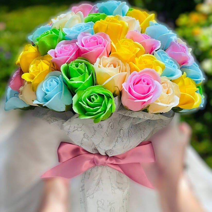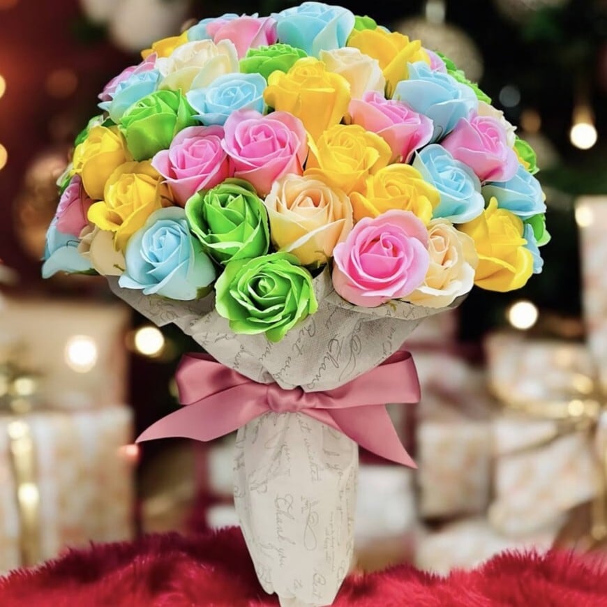 オリジナルブランド「サヴォンローズ」は、石鹸成分で作られたバラの花束で、贅沢な美しさと長持ちする魅力を兼ね備えています。洗練されたデザインと鮮やかな色合いが、特別な瞬間をより一層華やかに演出します。贈り物やインテリアに最適なこのブーケは、気品と高級感を求める方にぴったりです。